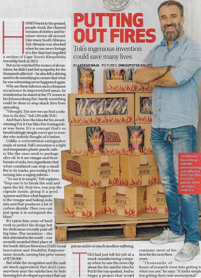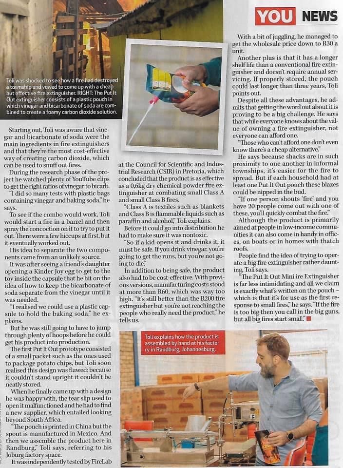 In one of our earlier press features, the You magazine interviewed Toli and shed much light his mini fire extinguisher product. If you’d like to read the full article click here, or simply read the images below.